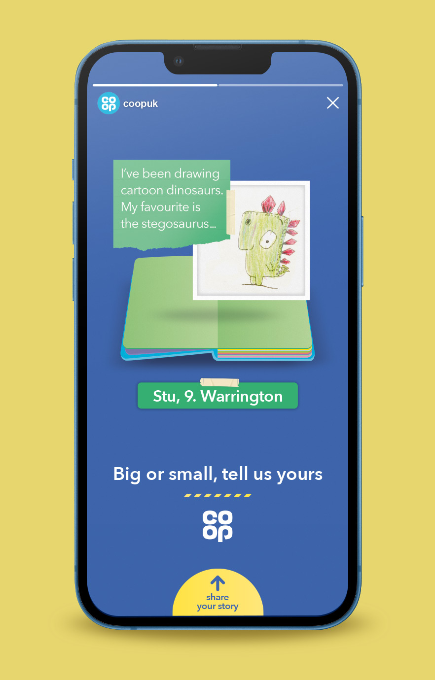 Customers were encouraged to contribute to an online form via locally managed social channels, instore community board posters and digital media. Creatively direction followed Co-op’s longstanding community illustration aesthetic.